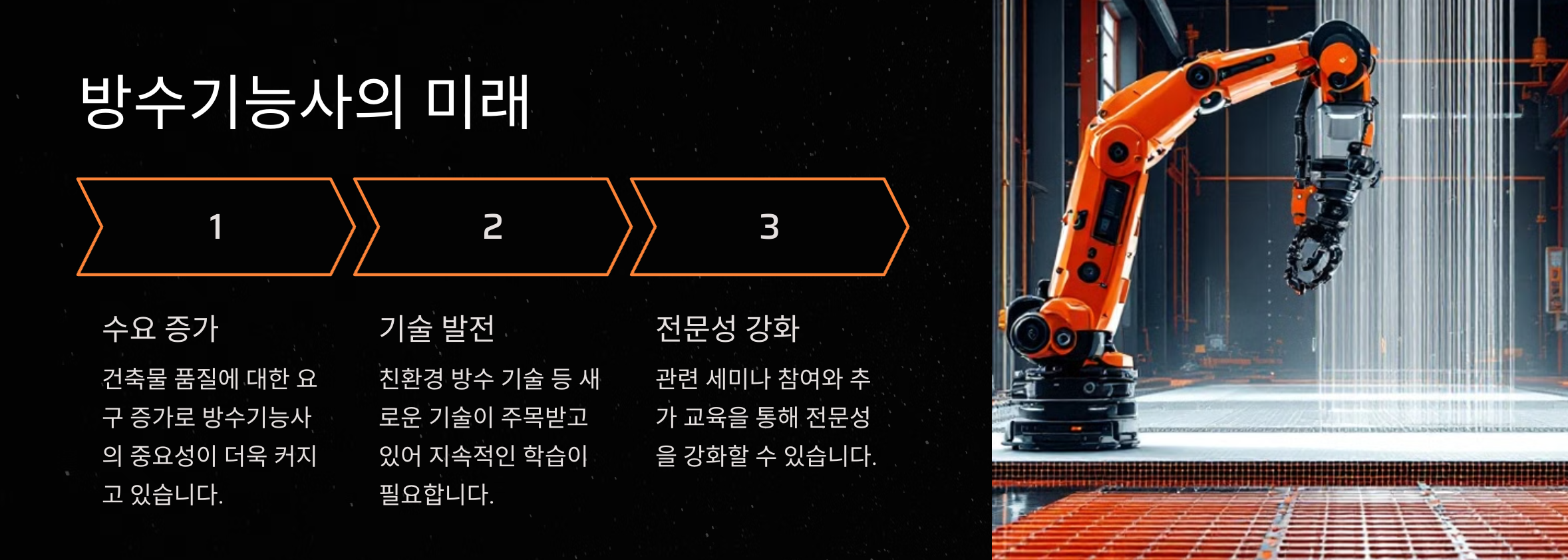 최근에는 친환경 방수 기술이 주목받고 있어, 이와 관련된 추가 교육이나 세미나에 참여해 새로운 기술을 익히는 것도 큰 도움이 될 거예요.