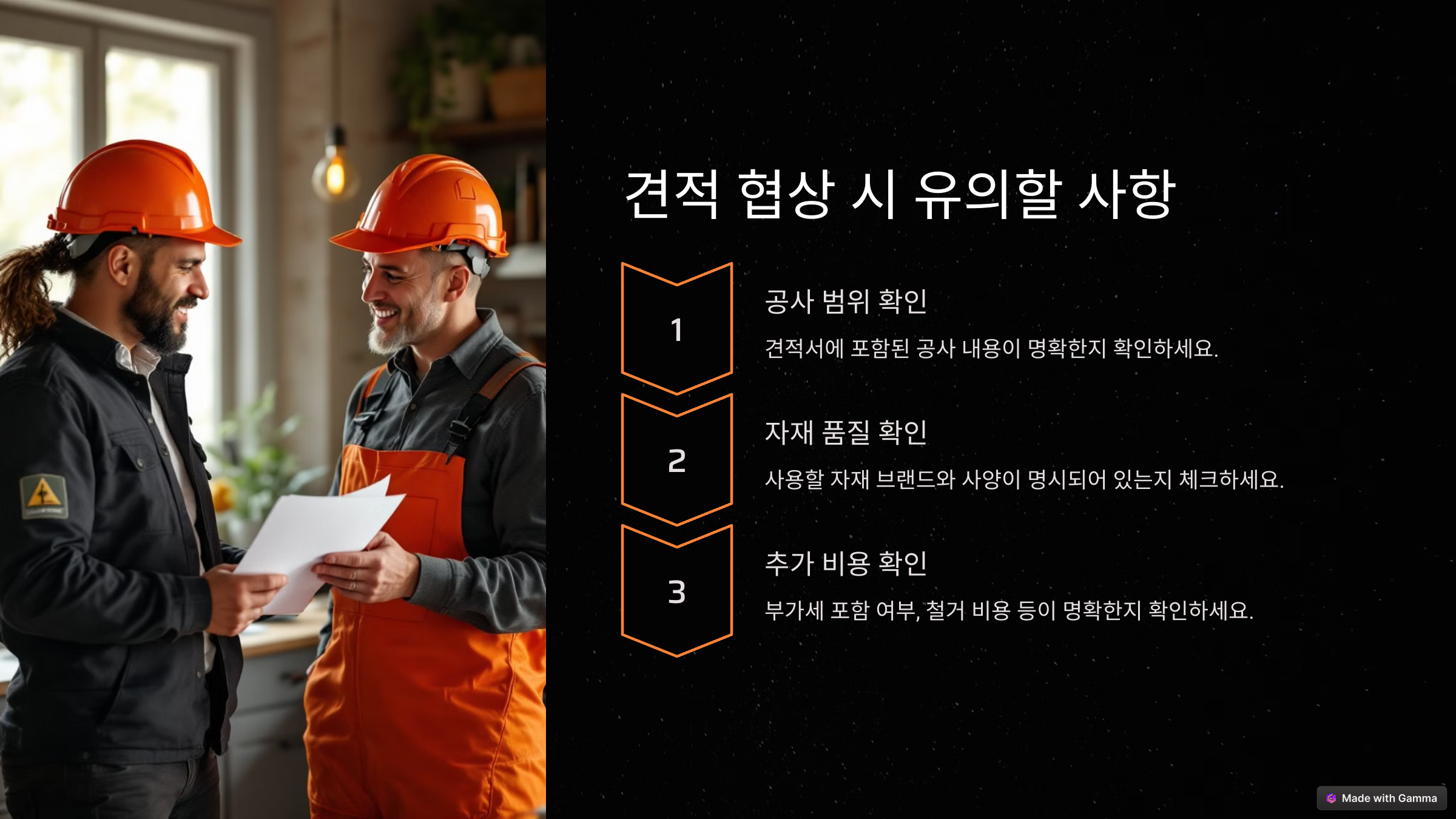견적을 협상할 때 중요한 체크 포인트를 정리했어요. 아래 내용을 참고하면 보다 합리적인 가격으로 계약할 수 있어요! 😊