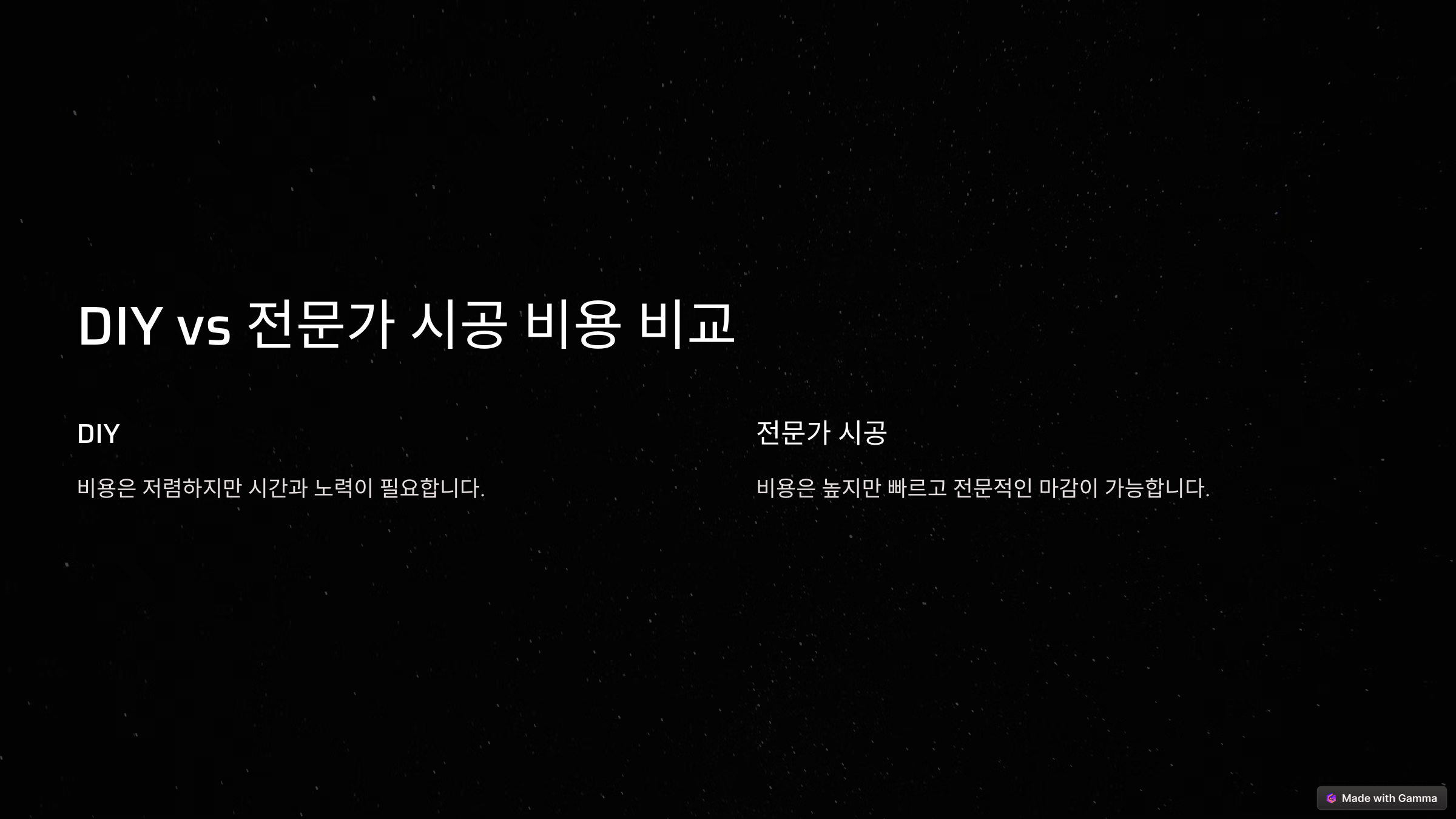 어떤 방식이 더 경제적인지 비교하기 위해 DIY와 전문가 시공의 장단점을 정리해 봤어요. 😊